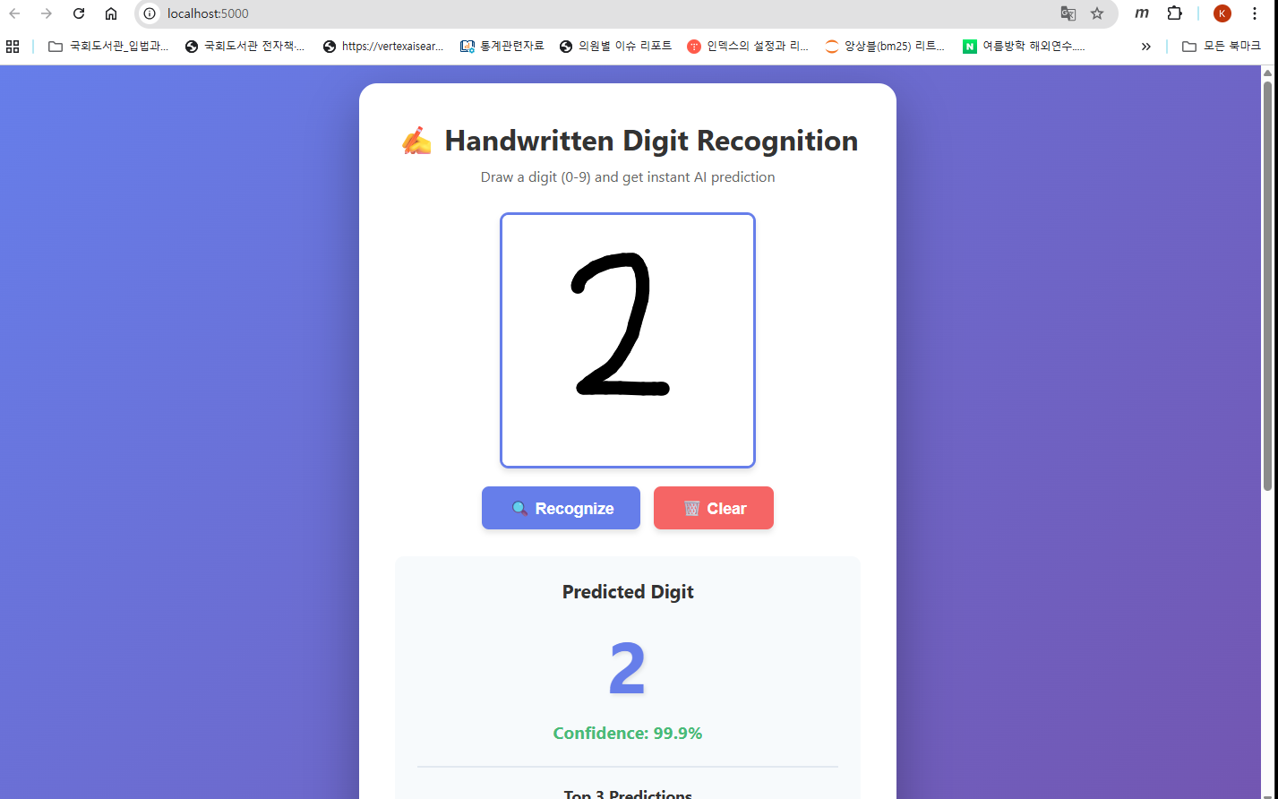 손글씨로 숫자를 입력하면 이것을 인식하는 코드를 만들어서 실행해 줘. 모든 코드와 주석을 영어로 작성해 줘.