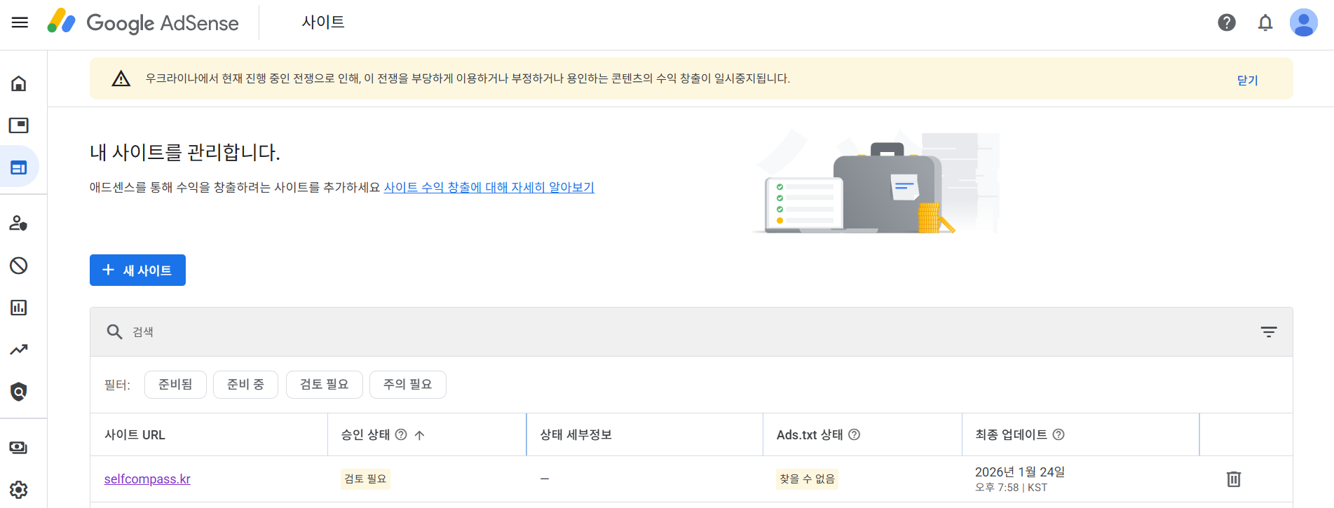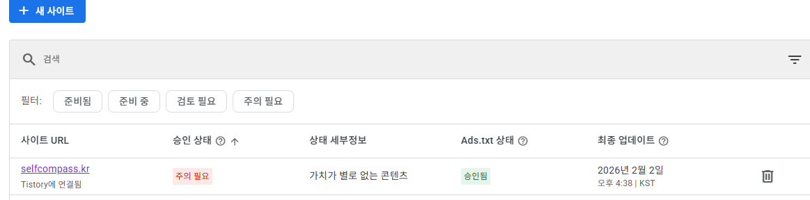 구글 애드센스에서 등록한 도메인을 등록하겠습니다.