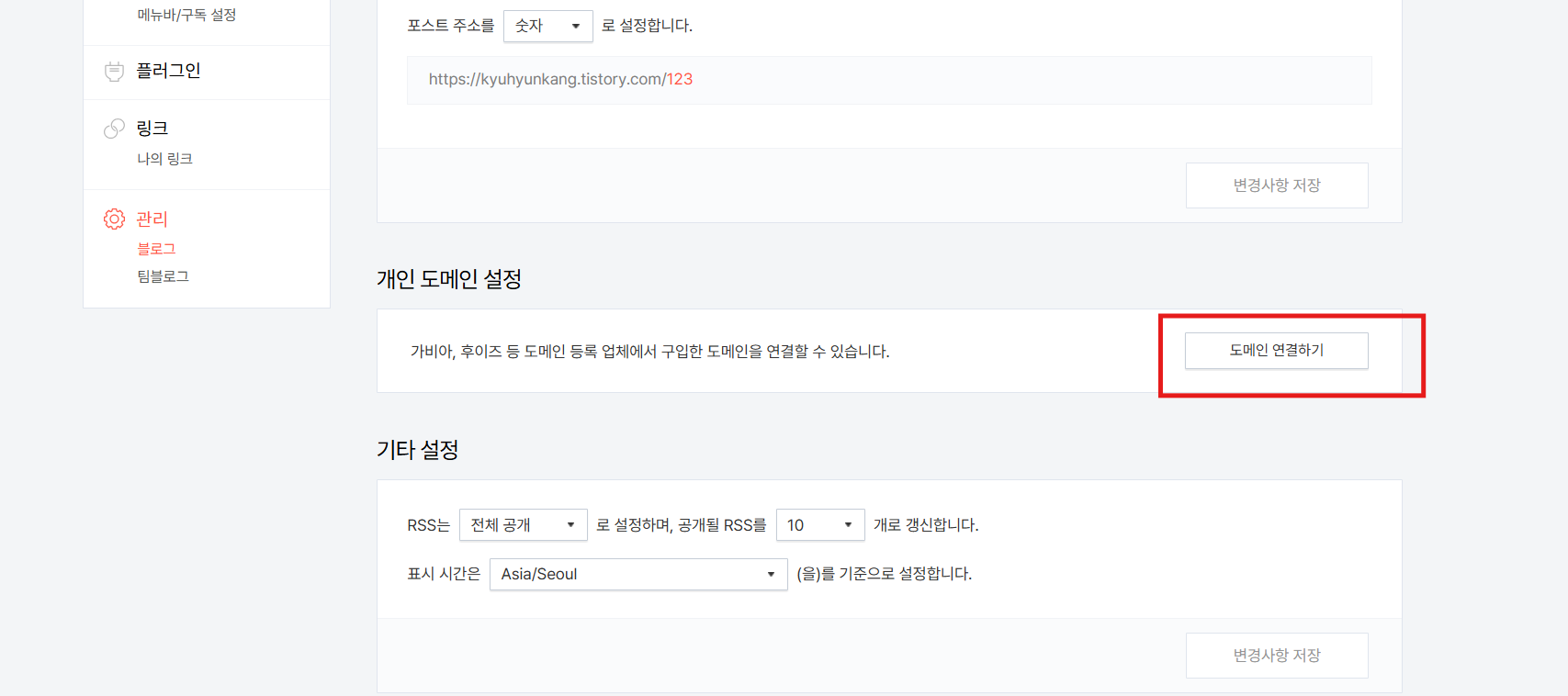 도메인 연결하기 버튼을 누릅니다.